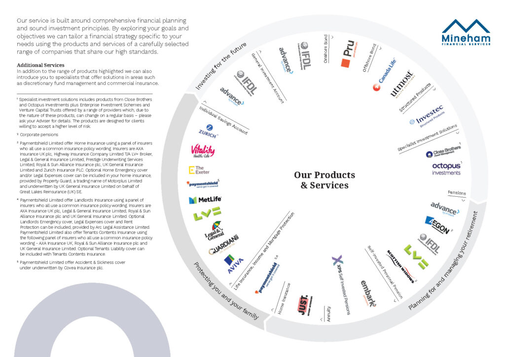 In addition to the range of products highlighted in the summary chart, we can also introduce you to specialists that offer solutions in areas such as discretionary fund management and commercial insurance.